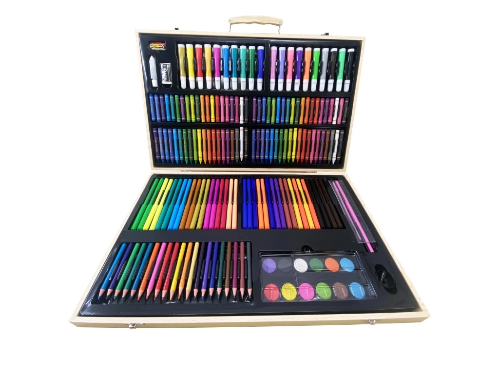 Questo set artistico completo è una scelta perfetta per principianti e utenti esperti. Include una vasta gamma di colori e strumenti per diverse tecniche – dall’acquerello ai pastelli, fino alle classiche matite colorate. Grazie alla valigetta in legno portatile avrai tutto in un unico posto, in modo sicuro e ordinato.
