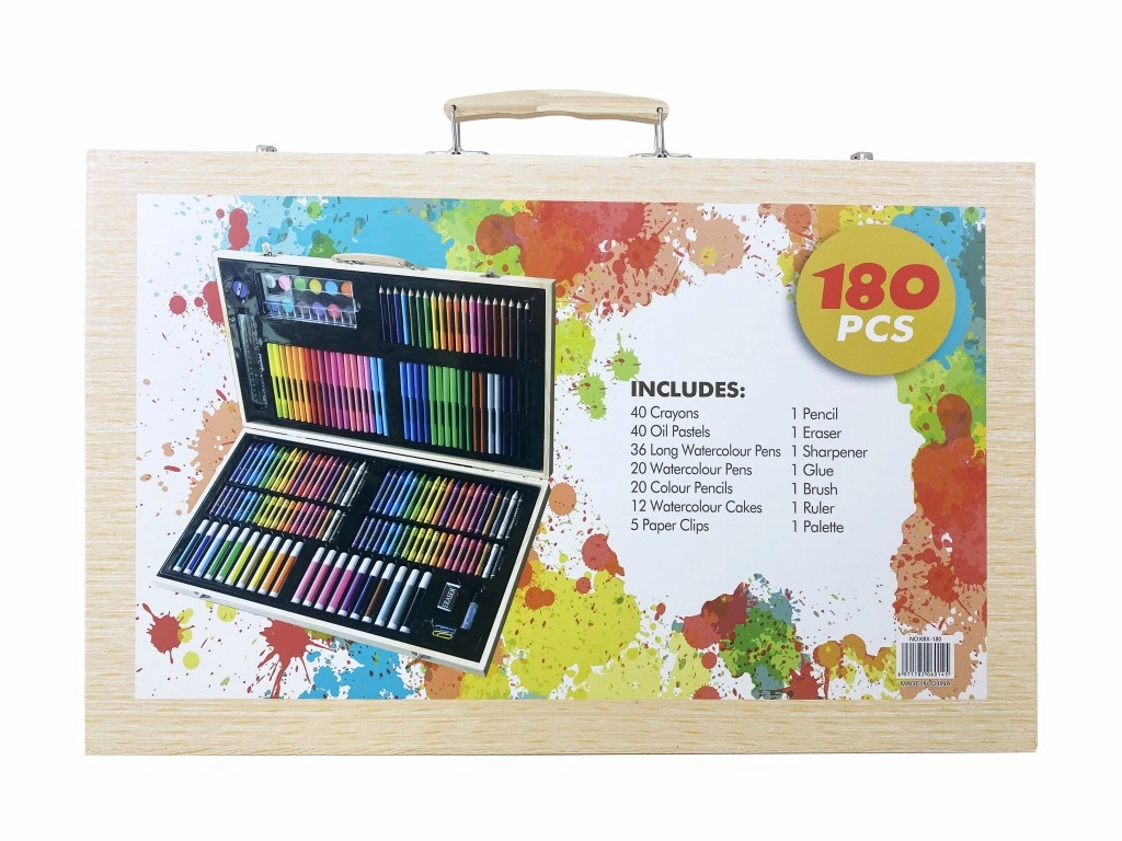 Scopri la versatile valigetta da pittura in legno, riccamente accessoriata per bambini, studenti e adulti. Il set offre 180 pezzi di materiali artistici per disegno, pittura e creazioni creative – tutto ordinatamente riposto in una pratica valigetta in legno, ideale per casa, scuola e viaggi.