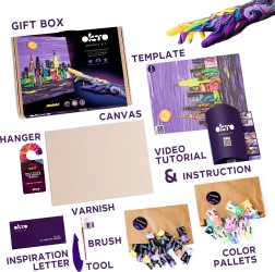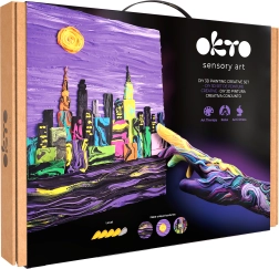 Questo set artistico OKTO ti guida passo dopo passo nella tecnica della pittura con pasta modellabile. Creerai un quadro plastico d’effetto con l’iconico motivo dello skyline della città di NEW YORK, che abbellirà il tuo interno o farà piacere come regalo originale.