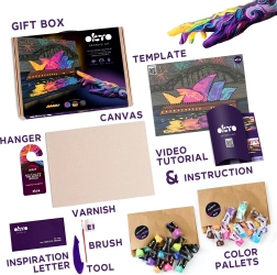 - Set completo – tela, istruzioni, strumento, pasta, vernice e pennello