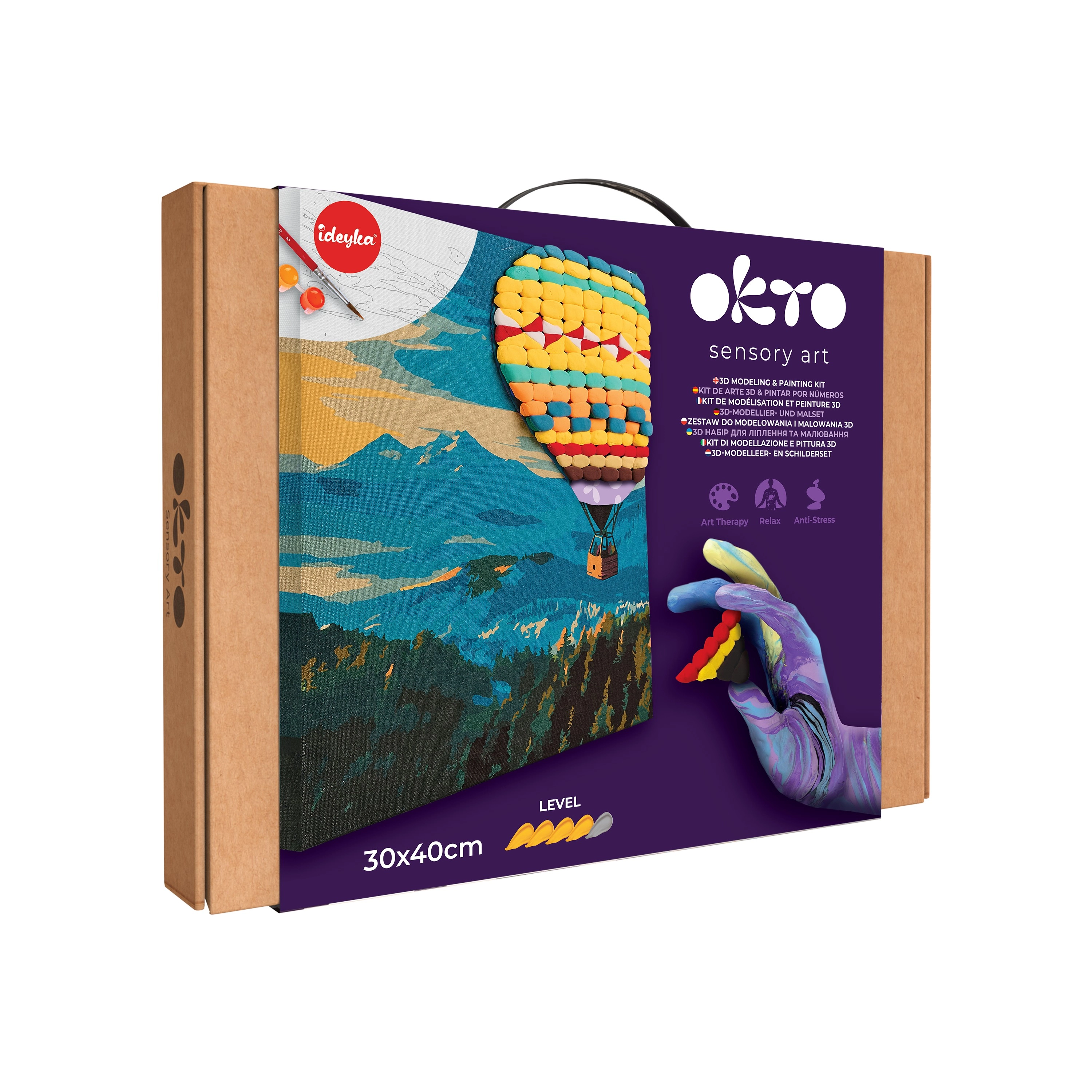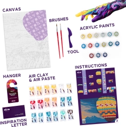 Scopri il piacere della creatività con l’originale quadro OKTO Hot Air Balloon Flight. L’unione delle tecniche di pittura con numeri e modellazione di elementi 3D garantisce un risultato visivo unico, che risalta in qualsiasi interno. Ideale per un relax creativo, per sviluppare la motricità fine e anche come regalo.