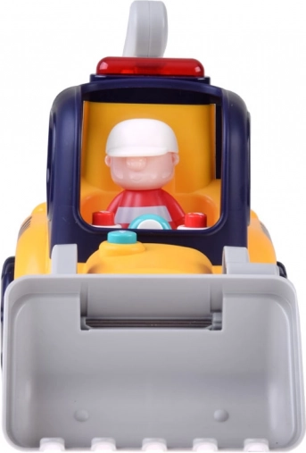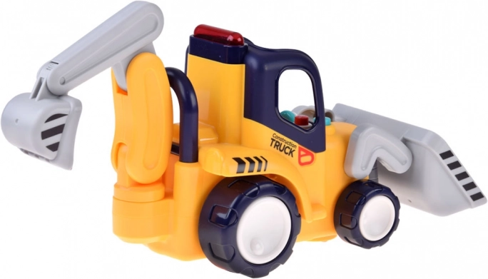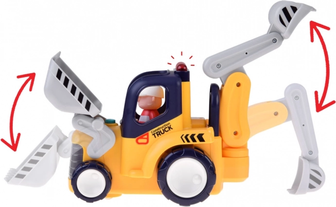 Il modello offre una modalità automatica con funzione “urta e vai” per il movimento autonomo e una modalità a telecomando con comando bidirezionale. La benna anteriore mobile e il secchio escavatore articolato attivano suoni realistici. Inclusa anche la figurina del conducente (attiva la guida con suoni e luci) e una piccola pallina per ancora più possibilità di gioco.