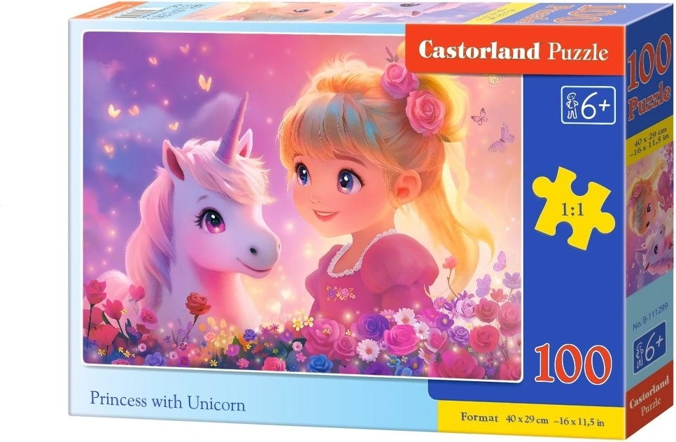 Affascinante puzzle per bambini con il motivo della principessa e dell’unicorno che offre 100 pezzi, ideale per allenare pazienza e motricità fine. Una volta completato, l’immagine misura circa 40 × 29 cm, perfetta sia da incorniciare sia per essere ricomposta più volte.