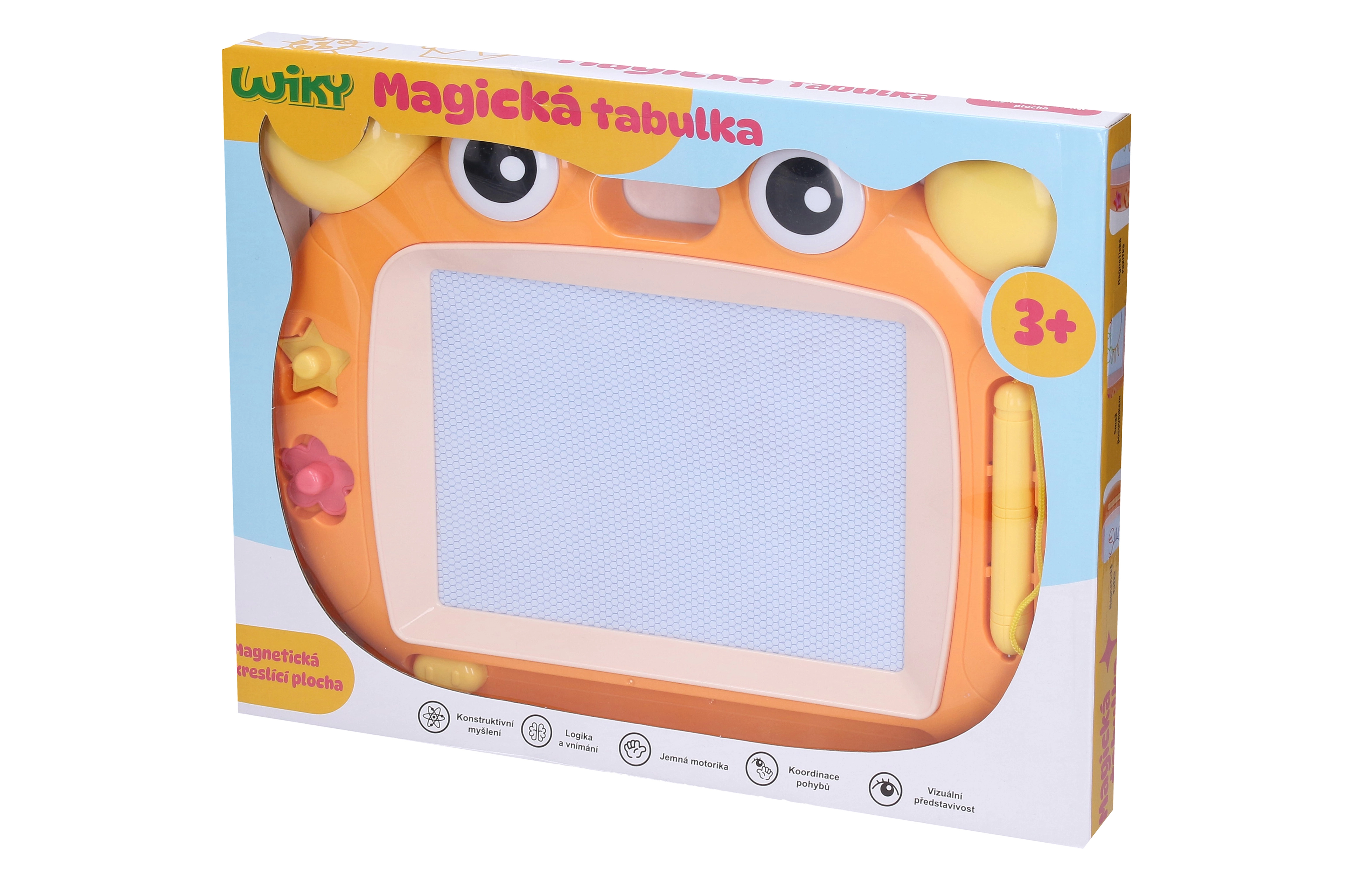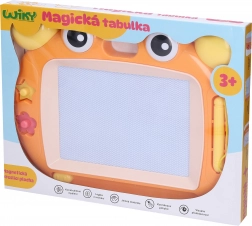 Divertente ed educativa lavagna magica da disegno da 33 cm con confezione in lingua ceca, perfetta per i piccoli artisti. Offre 2 varianti di colore (rosa, arancione), una pratica matita per disegnare, timbri magnetici e una semplice cancellazione con cursore – senza carta e senza disordine.