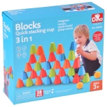 Questo set universale offre ai bambini ore di divertimento attivo. I bicchieri conici dai colori vivaci (verde, blu, arancione, rosso) sono leggeri, resistenti e grazie alla loro forma si impilano e stratificano alla perfezione. La superficie esterna zigrinata migliora la presa, mentre le scanalature interne sagomate facilitano un collegamento stabile degli elementi.