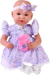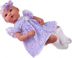 La bambola-bebè interattiva indossa un grazioso vestitino lilla con pizzo e una fascia coordinata. Il visino realistico, le lunghe “ciglia” e l’espressione dolce incoraggiano il gioco empatico e lo sviluppo della fantasia. Il pancino morbido e le braccia/gambe testate in plastica garantiscono comfort quando la si tiene in braccio e resistenza nel gioco quotidiano.