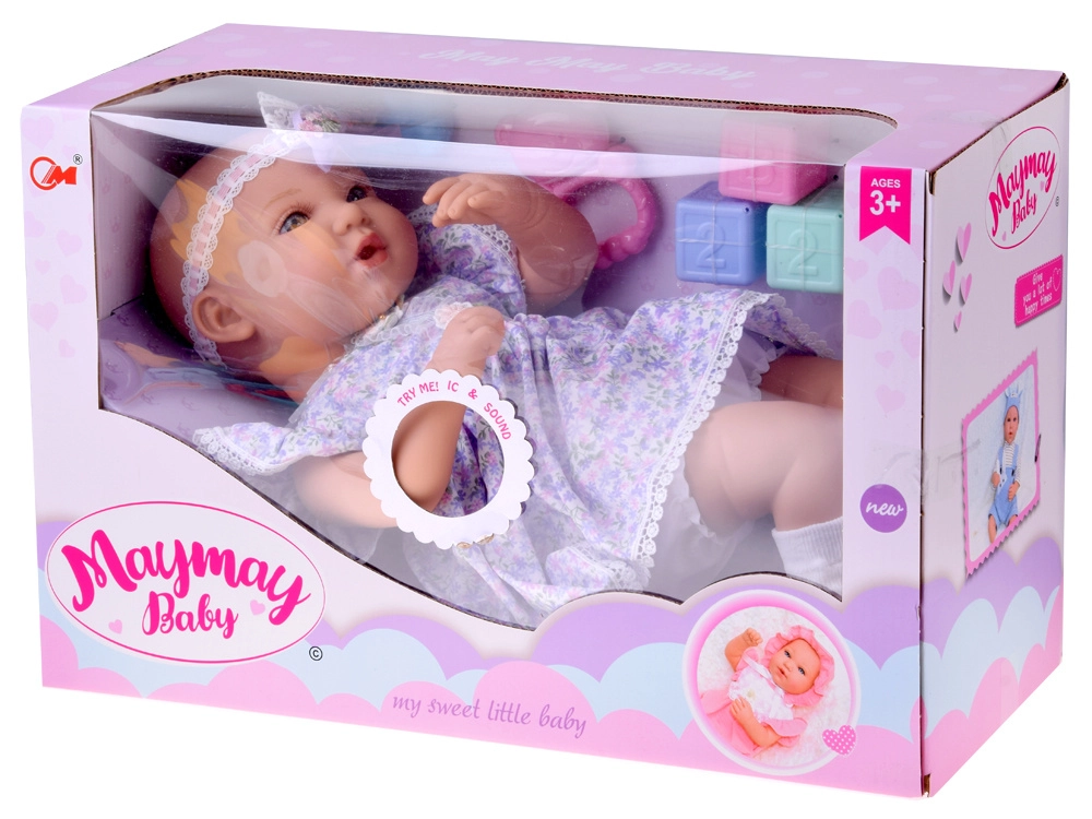All’interno della bambola è presente un modulo sonoro che, alla pressione, riproduce i tipici suoni del neonato: risata, gorgheggi (2 varianti), russare, “mamma”, pianto, starnuto, “papà”, tosse e singhiozzo. Il modulo è alimentato da batterie CR2032 (incluse nella confezione), così i bambini possono divertirsi subito dopo l’apertura.