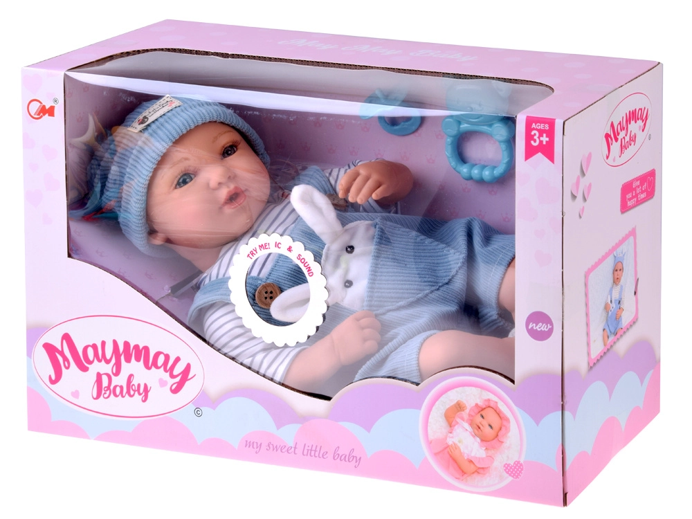 Nel pancino è presente un modulo sonoro interattivo che, premendo, riproduce vari suoni tipici del bebè: risate, lallazioni, russare, “mamma”, pianto, starnuto, “papà”, tosse e singhiozzo. Le batterie CR2032 sono incluse, così i bambini possono iniziare a giocare subito dopo l’apertura.
