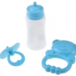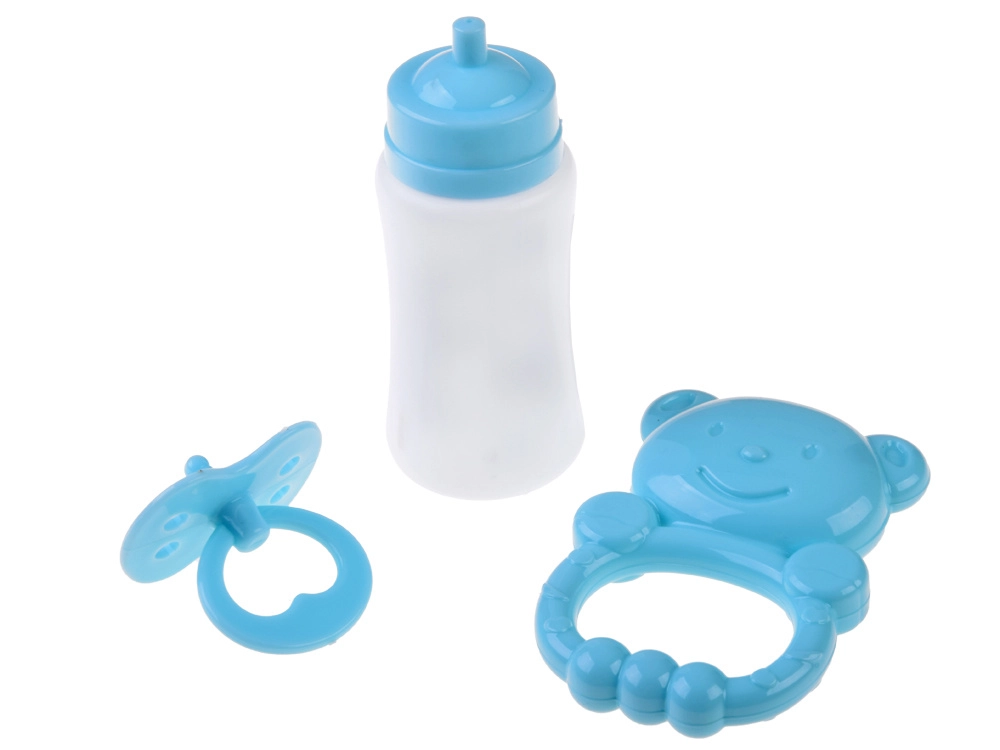Inclusi biberon, ciuccio e sonaglino a forma di orsetto. Gli accessori sono leggeri, facili da afferrare e perfettamente coordinati con l’abbigliamento.