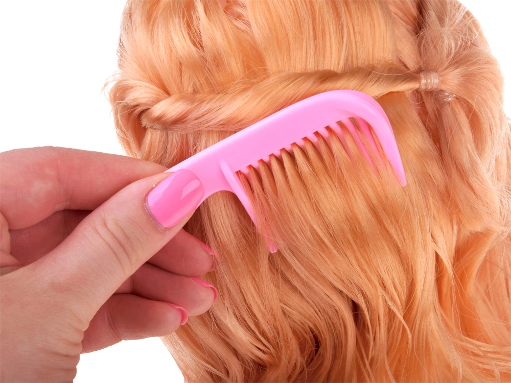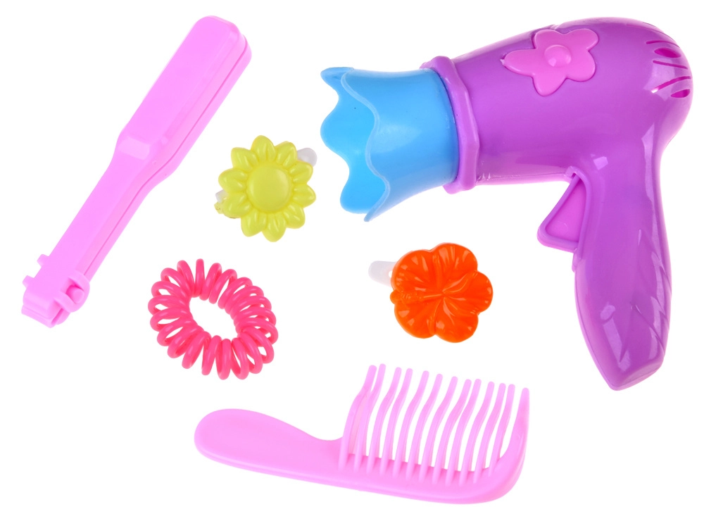 Inclusi pettine, phon giocattolo, piastra, elastico e due fermagli – tutto per acconciature creative e per giocare al salone.