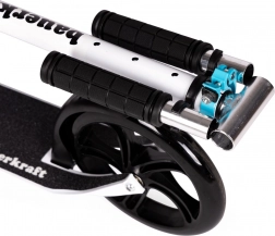 Il monopattino si ripiega rapidamente in dimensioni compatte, così puoi portarlo sui mezzi pubblici e riporlo facilmente a casa o a scuola. Le manopole ergonomiche in materiale morbido e antiscivolo garantiscono una presa comoda e sicura. L’altezza regolabile del manubrio 95–105 cm assicura la posizione corretta per utenti di diversa statura e “cresce” insieme al bambino.