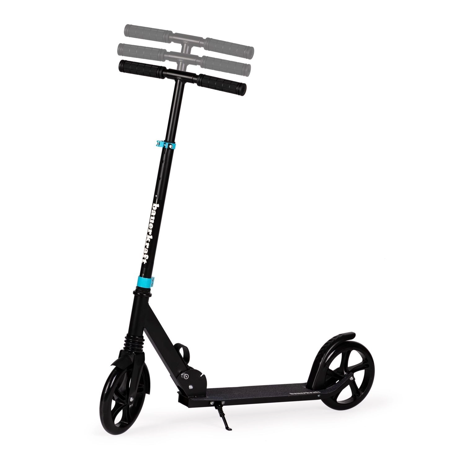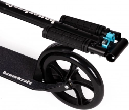 L’altezza del manubrio si regola facilmente in tre posizioni nel range 95–105 cm, così il monopattino “cresce” con il pilota mantenendo una postura corretta ed ergonomica. Le manopole ergonomiche morbide aumentano comfort e controllo. Il meccanismo di chiusura rapida e il cavalletto facilitano trasporto, parcheggio e riponimento in casa o a scuola.