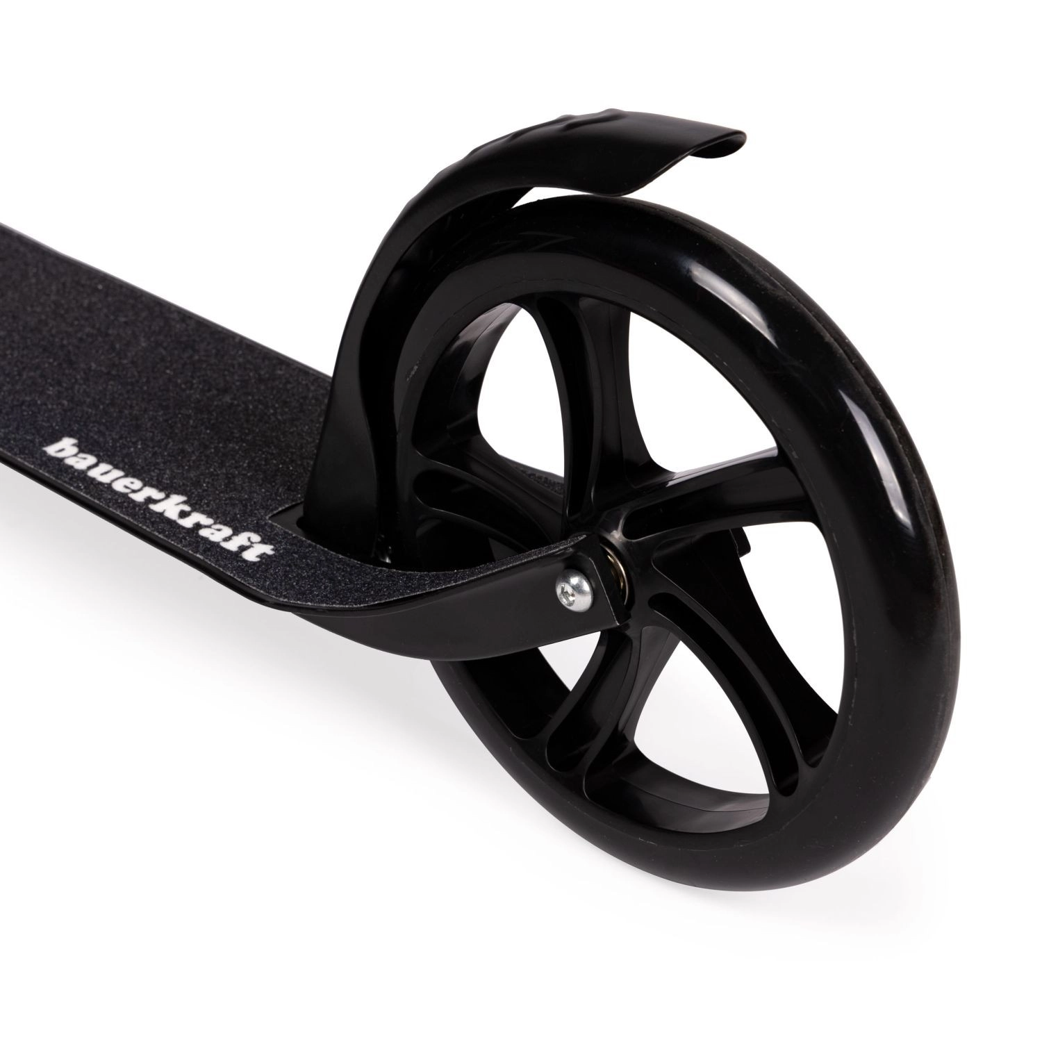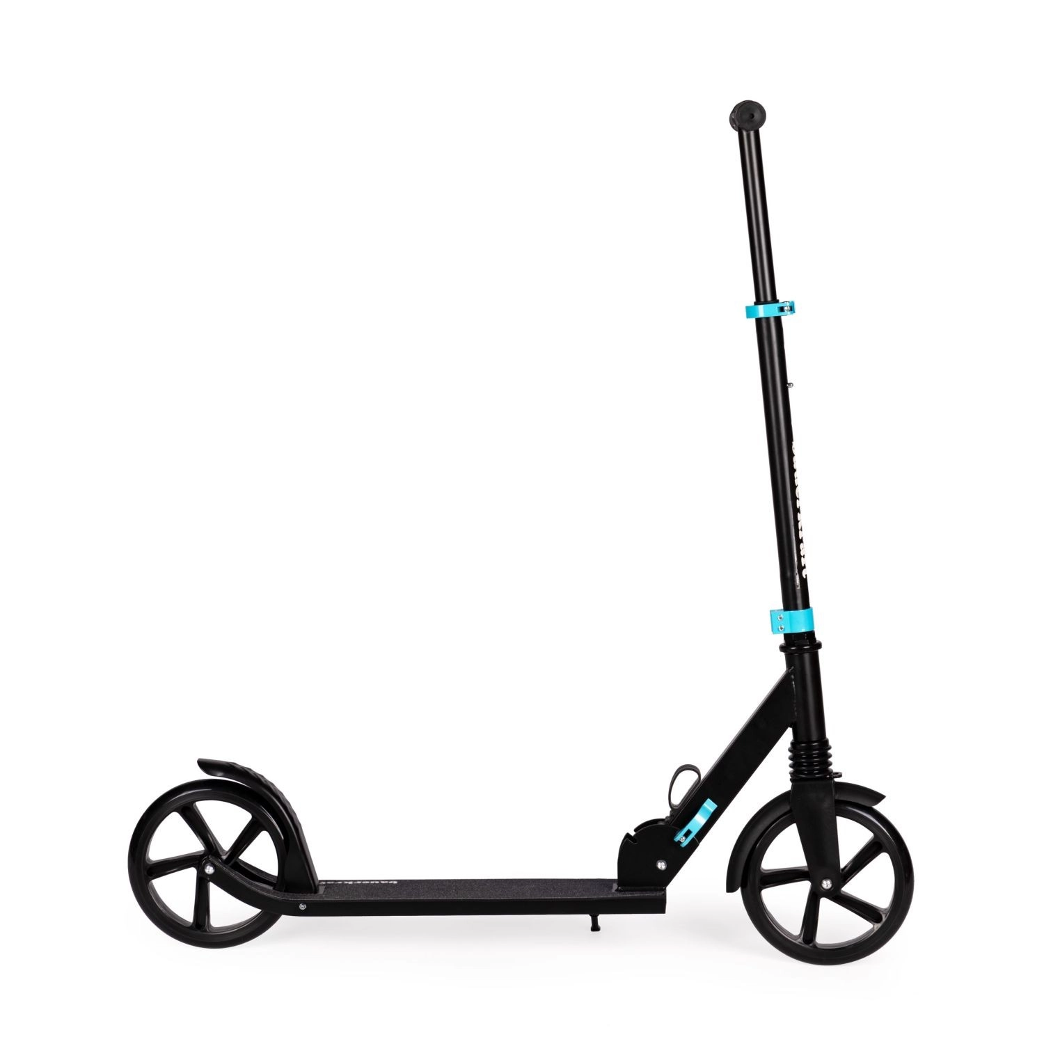 Questo monopattino pieghevole in leggero alluminio è progettato per un’andatura scorrevole e confortevole su asfalto, piste ciclabili e marciapiedi. La sospensione anteriore a molla attenua le vibrazioni e le grandi ruote in PU da 200 mm con cuscinetti ABEC-7 assicurano un rotolamento fluido e stabile. Il parafango posteriore funge da freno per arresti sicuri e protegge dagli schizzi d’acqua.