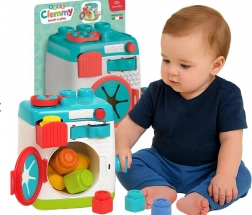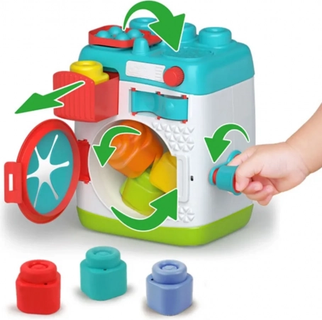 Scopri un giocattolo magico che unisce azione meccanica interattiva a sicuri mattoncini morbidi Clemmy. Girando la rotellina laterale, i bambini osservano l’effetto “lavaggio” e allenano naturalmente la coordinazione mano–occhio e il pensiero logico. L’aspetto realistico della lavatrice ispira anche giochi di casa.