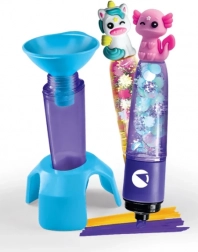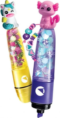 Il set include diversi inchiostri colorati, corpi vuoti degli evidenziatori, piccole decorazioni e strumenti per l’assemblaggio. I bambini scelgono il colore, riempiono il pennarello, lo decorano con figurine di animali magici e ottengono un accessorio scolastico originale.