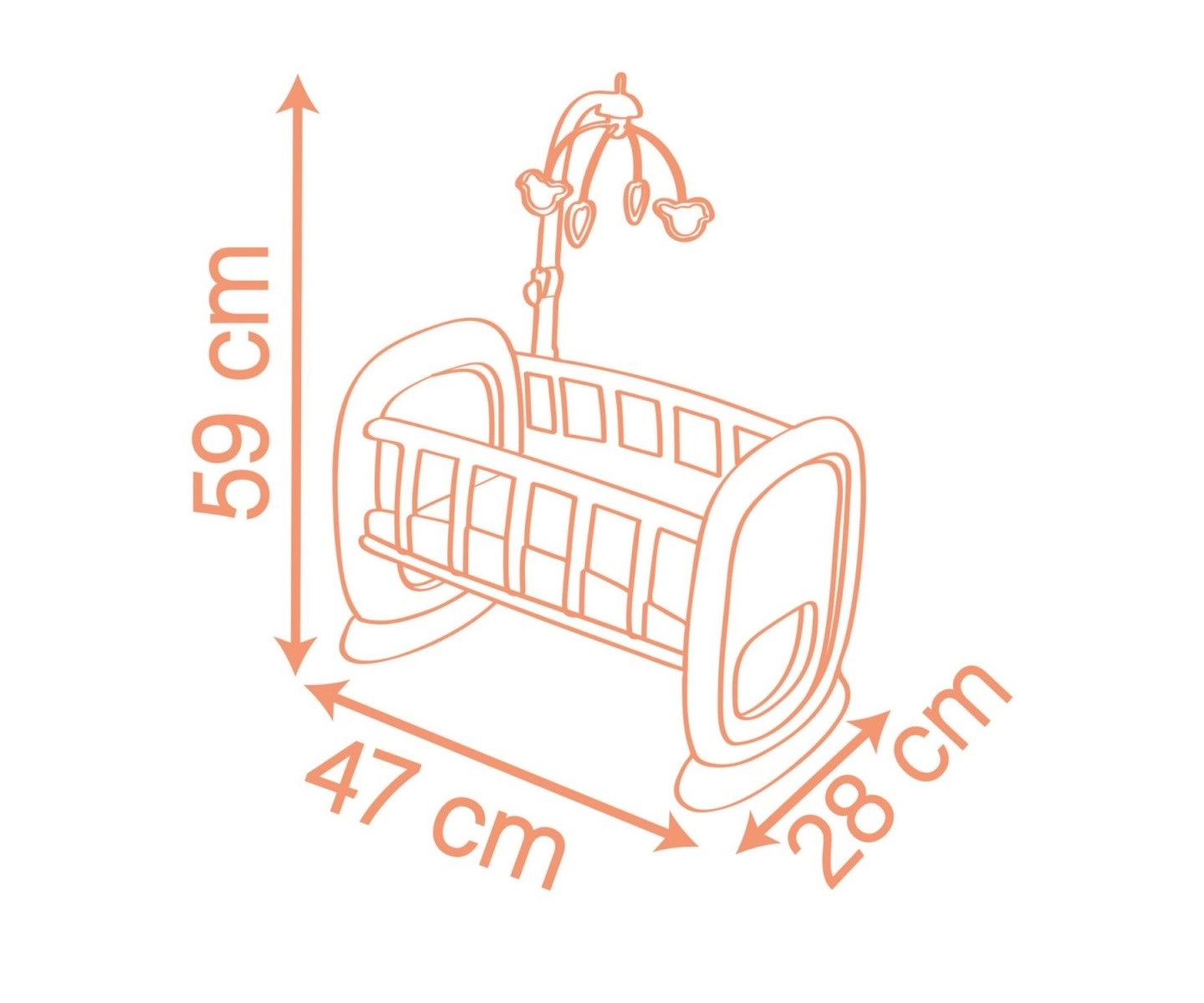 La graziosa culla per bambole Baby Nurse del marchio Smoby combina culla e lettino in uno. Grazie alla giostrina azionata manualmente, il tuo bebè – la bambola – si addormenta facilmente, mentre la struttura stabile e la superficie facilmente lavabile garantiscono un gioco confortevole e sicuro. Prodotta in Francia con il 63% di materiali riciclati e adatta a bambole fino a 42 cm.