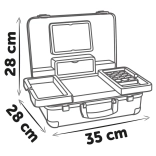 La valigetta è progettata per essere facilmente trasportabile: ha 2 chiusure di sicurezza, un pratico manico, un vero specchio e uno scomparto segreto per i piccoli oggetti. I cassetti estraibili fanno risparmiare spazio e offrono ulteriore capienza per riporre tutti gli accessori.