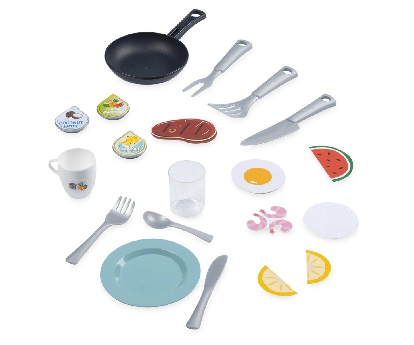 Inclusi tanti accessori per un gioco realistico: dalla padella e gli utensili da cucina alle stoviglie, ai bicchieri e alla macchina del caffè integrata con 3 capsule. La struttura leggera ed ergonomica e il formato “cucinetta in valigetta” la rendono perfetta per le vacanze, dai nonni o per le gite del weekend.