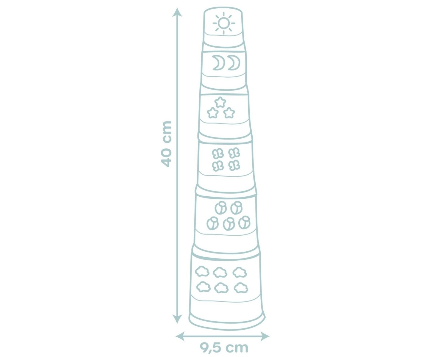 La colorata torre impilabile LITTLE SMOBY offre ai bambini ore di scoperta e divertimento. 6 bicchierini di colori diversi da inserire uno nell’altro o impilare, e nella vasca osservare il passaggio dell’acqua attraverso i fori. Il gioco sviluppa naturalmente la motricità fine, la coordinazione mano-occhio, il riconoscimento di forme e colori e il pensiero logico.