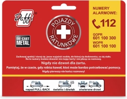 Il modello fa parte di una serie a tema dedicata ai servizi di emergenza: polizia, vigili del fuoco e servizio di ambulanza. Sulla confezione trovi anche informazioni utili sul comportamento corretto nelle situazioni di emergenza e il numero di telefono per le emergenze, rendendo il gioco anche un’attività educativa.
