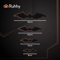 Decorazione di stile per Halloween, feste a tema e photobooth. Il set comprende pipistrelli in 4 dimensioni, facilmente combinabili in uno sciame o con effetto "decollo". Grazie al basso peso e al nastro incluso, il montaggio è rapido e delicato sulle superfici.