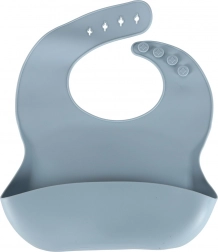 Il morbido bavaglino in silicone con chiusura regolabile e ampia tasca raccoglie briciole e liquidi, mantenendo i vestiti puliti.