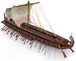 Il modello colpisce per il numero di remi, le vele decorate e la forma della prua: ideale per gli amanti della storia e del design.