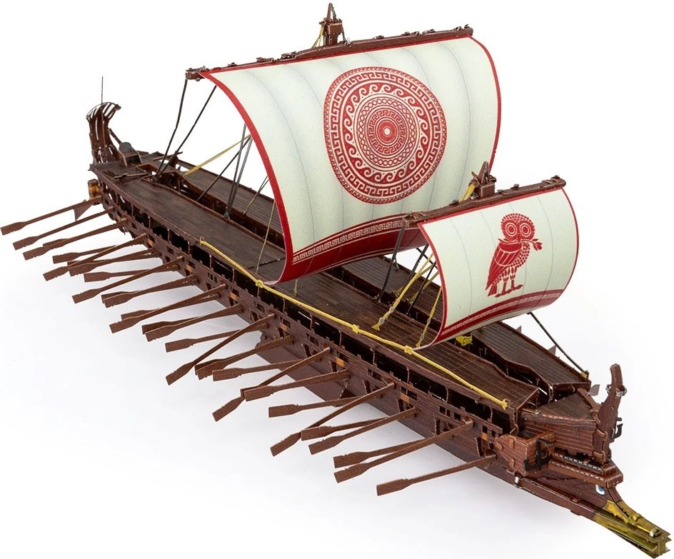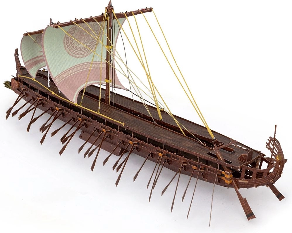 Le sottili linee delle vele, il rivestimento dello scafo e gli elementi di coperta sono tagliati e incisi con alta precisione per un aspetto autentico della trireme.