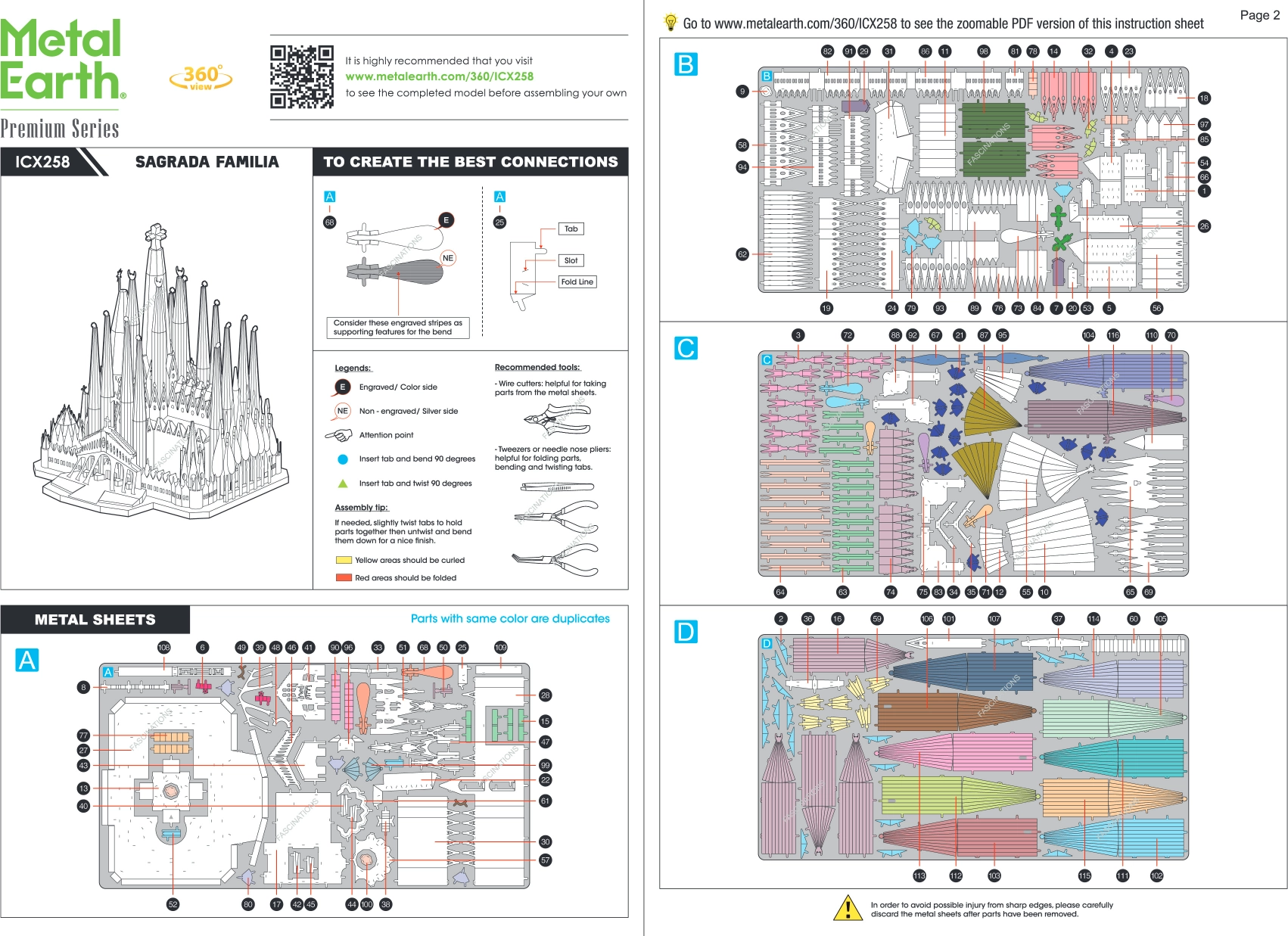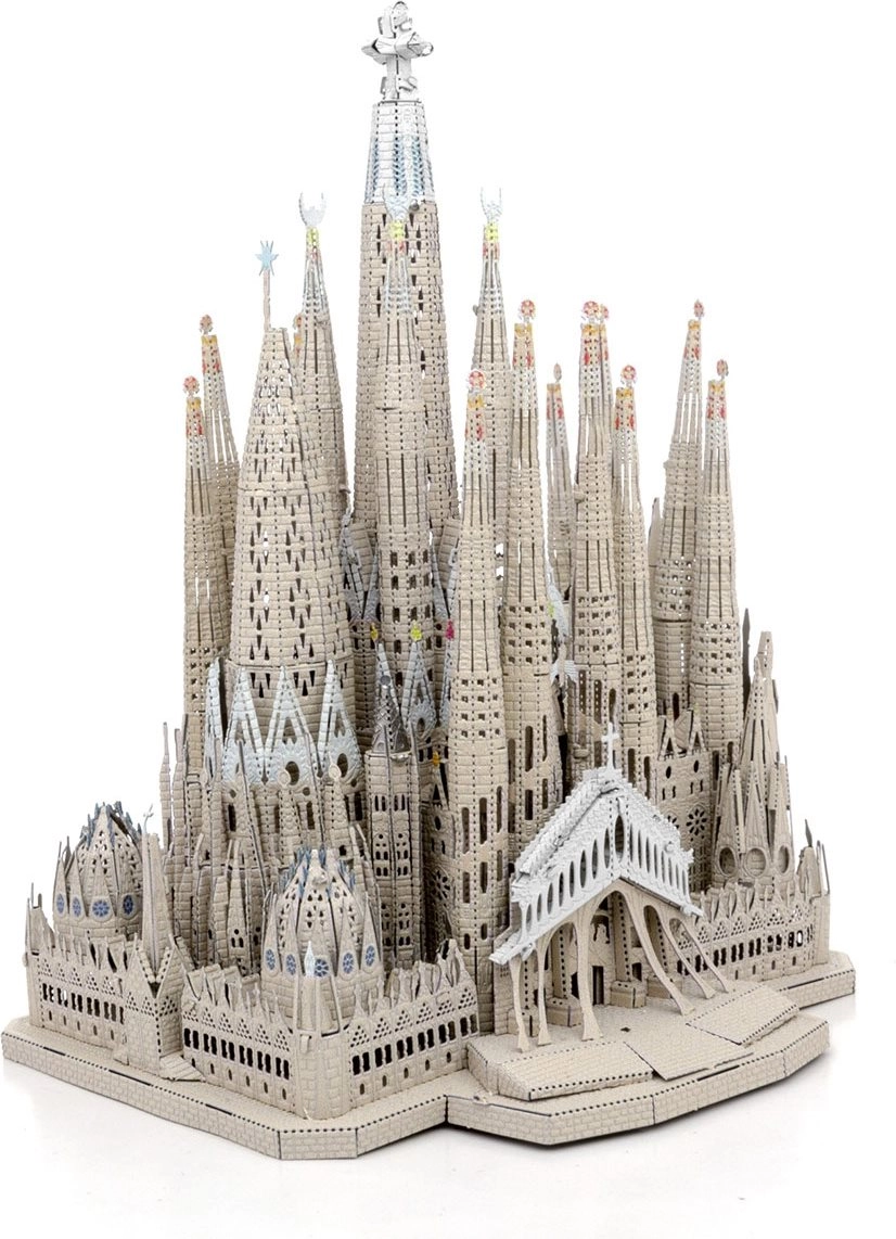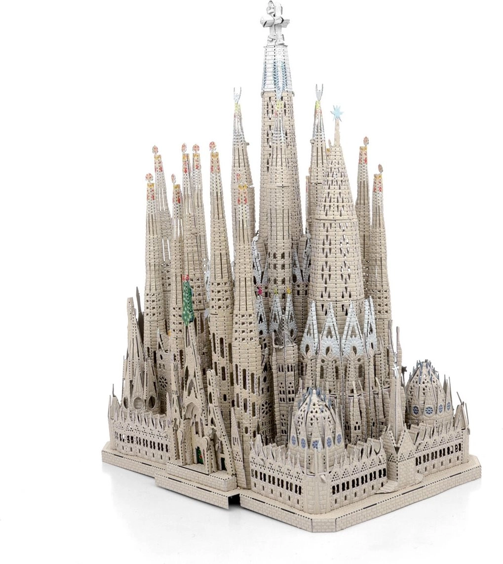 Il set premium METAL EARTH consente di creare da sottili lastre d’acciaio un impressionante modello 3D della Sagrada Família. I singoli pezzi si staccano dalle piastrine metalliche e si collegano tramite incastri – senza colla. I dettagli incisi al laser mettono in risalto facciate, torri e finestre, conferendo al modello un aspetto autentico.