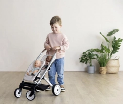 Il passeggino è pensato per due bambole e favorisce il gioco sociale e lo sviluppo delle abilità di cura.