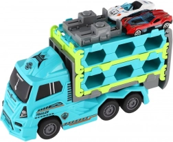 Questo resistente camion in plastica funge da trasportatore per piccole auto da corsa e offre ai bambini tanto divertimento d’azione. Grazie al meccanismo a inerzia, dopo averlo caricato si avvia da solo, ideale per un gioco dinamico su tappeto e su superfici lisce.