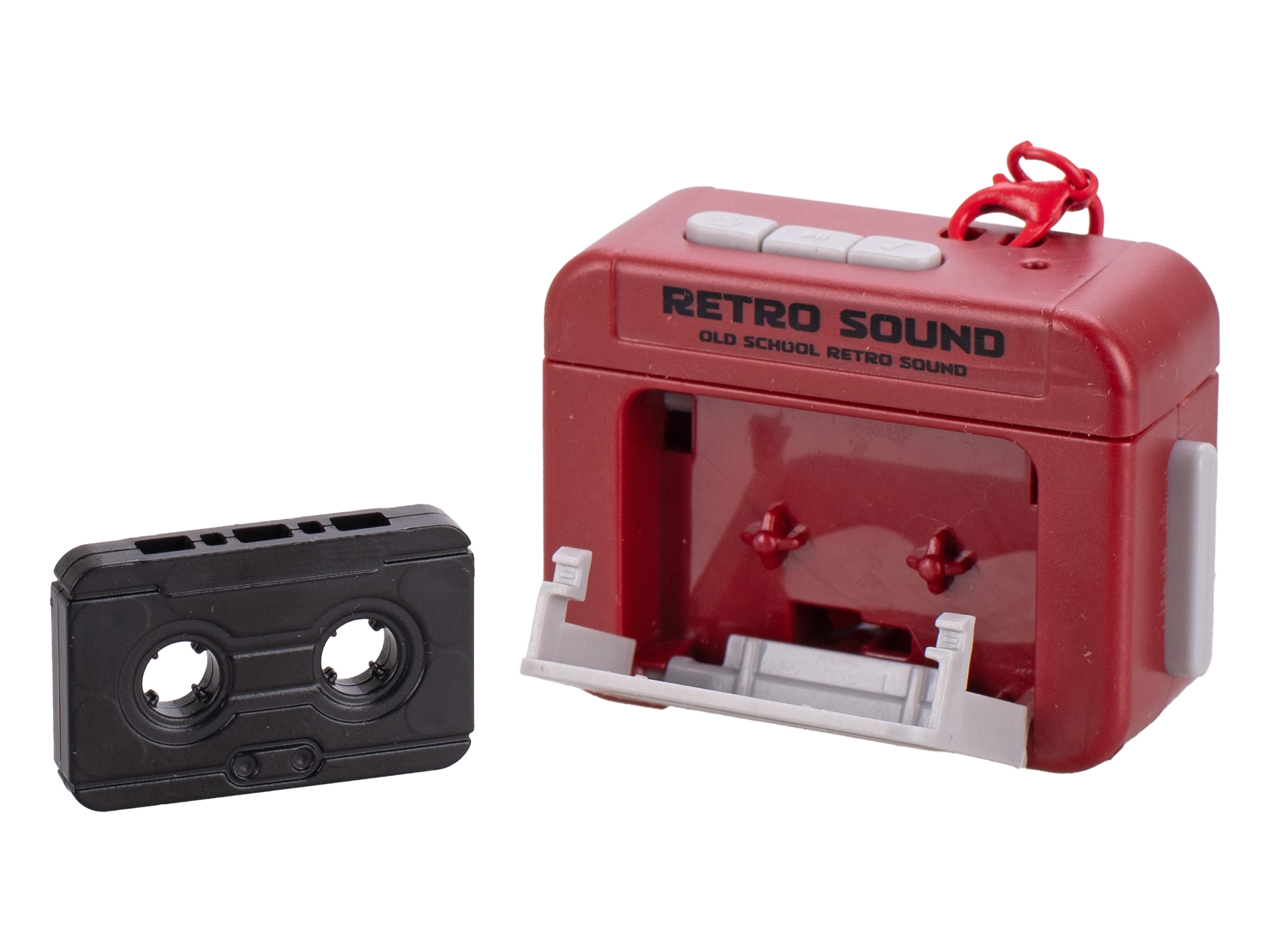 Elegante portachiavi a forma di lettore a cassette retrò che porta divertimento in viaggio. Offre effetti luminosi e sonori, un formato compatto di 5,5 cm ed è disponibile in due varianti di colore – blu e rosso. Le batterie 4× LR41 sono incluse nella confezione.