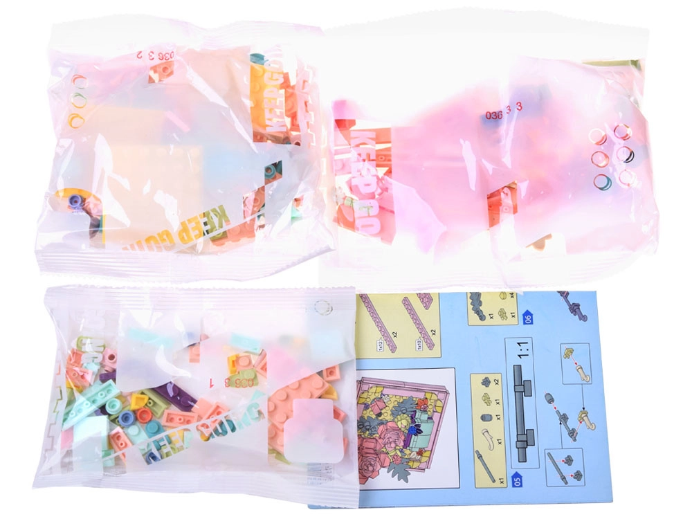- Pezzi del set, cornice/supporto a seconda del motivo, sacchetti per la suddivisione, manuale illustrato