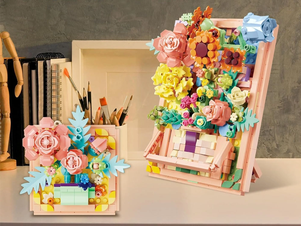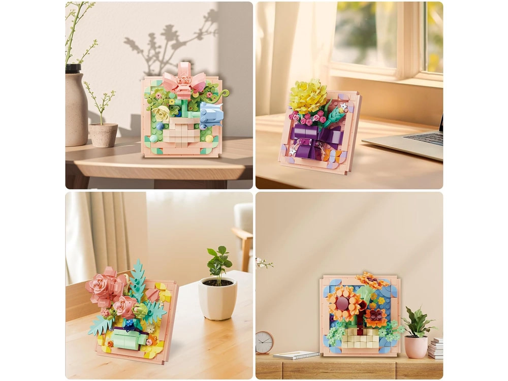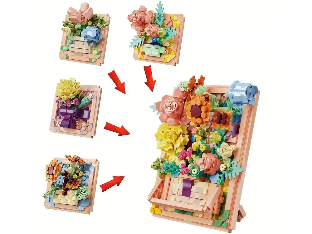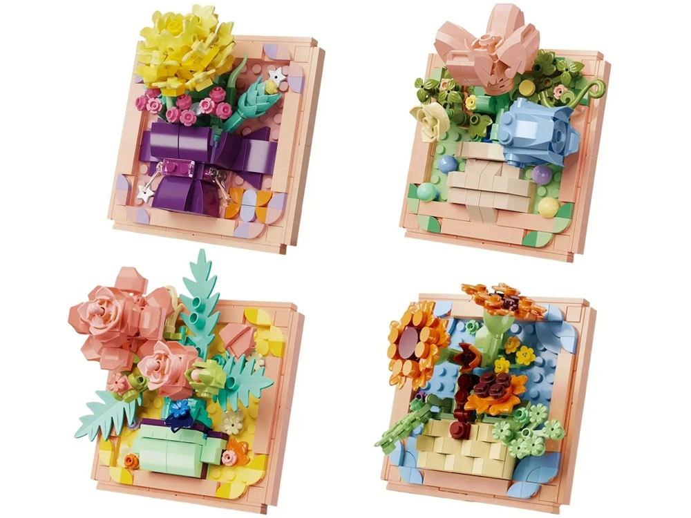 Disponibili quattro motivi: Carnation (garofani), Rose (rose), Camellia (camelia) e Sunflower (girasoli), ognuno con una diversa palette di colori e numero di pezzi. La confezione include un manuale illustrato, che rende la costruzione facile e divertente anche per i principianti. Inoltre, tutti i motivi possono essere combinati a scelta in un unico quadro 3D più grande.