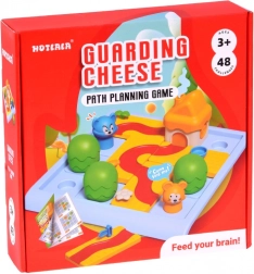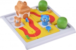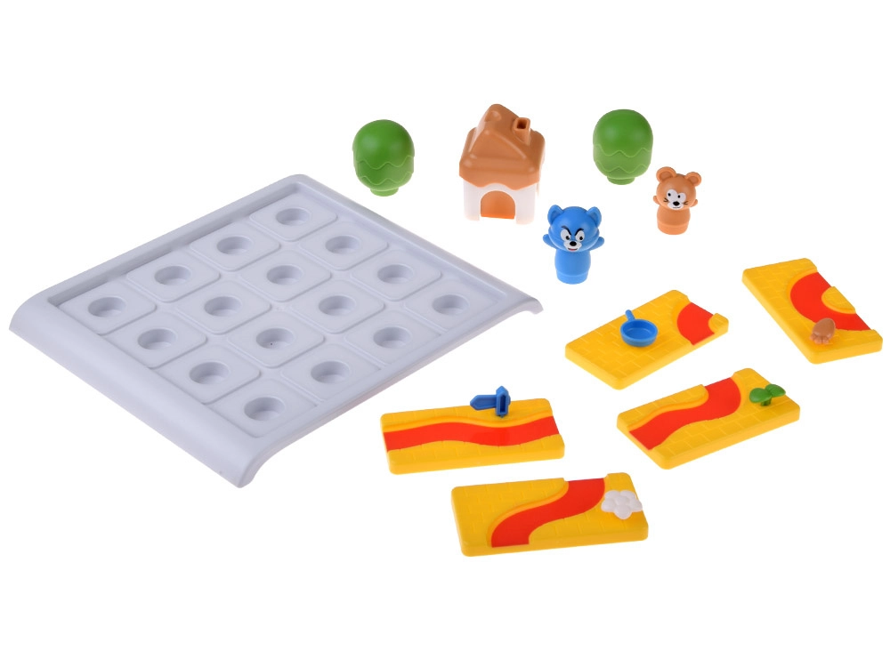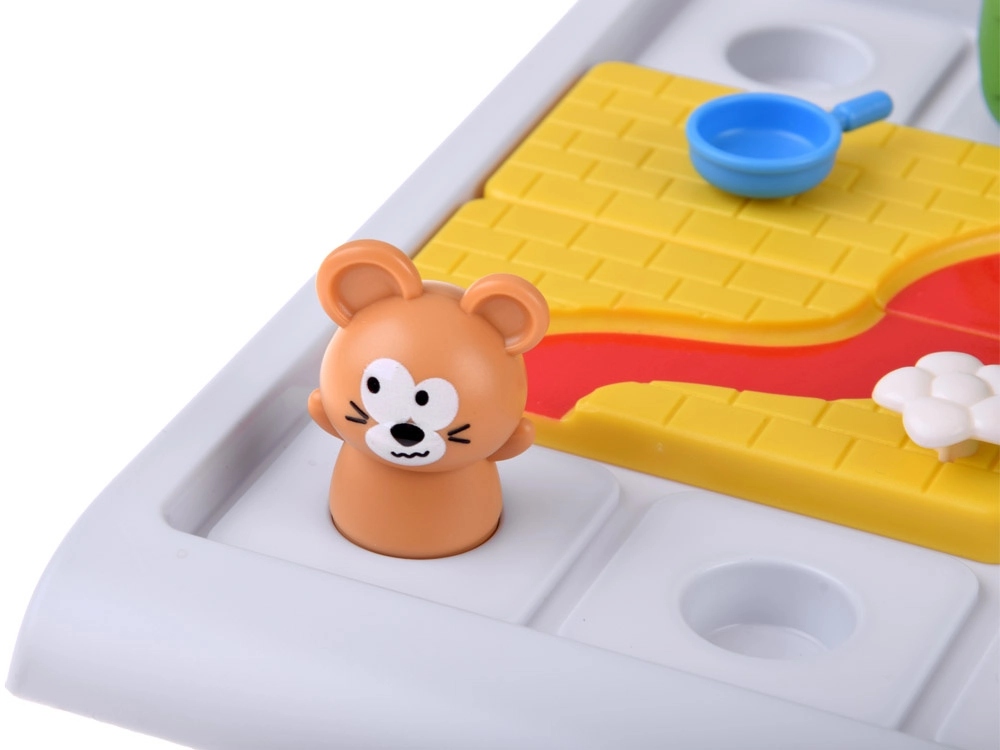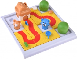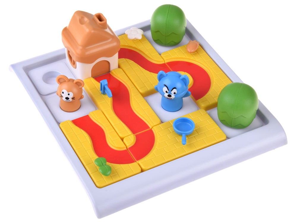 Costruisci il percorso corretto sulla griglia e accompagna il topolino (e nei livelli superiori anche il gatto) alla casetta con il formaggio. Nella variante più semplice basta pianificare un percorso sicuro per il topolino usando i pezzi disponibili ed evitando gli ostacoli. Nella variante più impegnativa crei due percorsi differenti – uno per il topolino e uno per il gatto – ciascuno deve terminare a porte diverse della casetta.