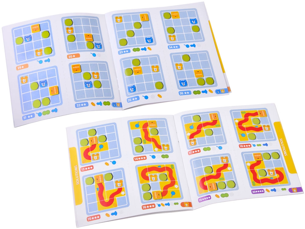 La difficoltà progressiva in quattro livelli insegna ai bambini a pianificare i percorsi, a pensare in anticipo e a risolvere i problemi passo dopo passo. Ogni sfida ha un’unica soluzione corretta.
