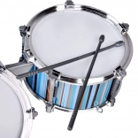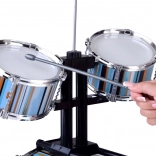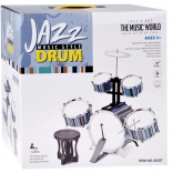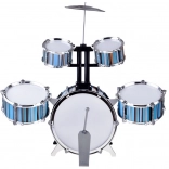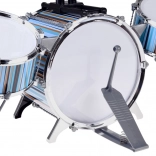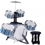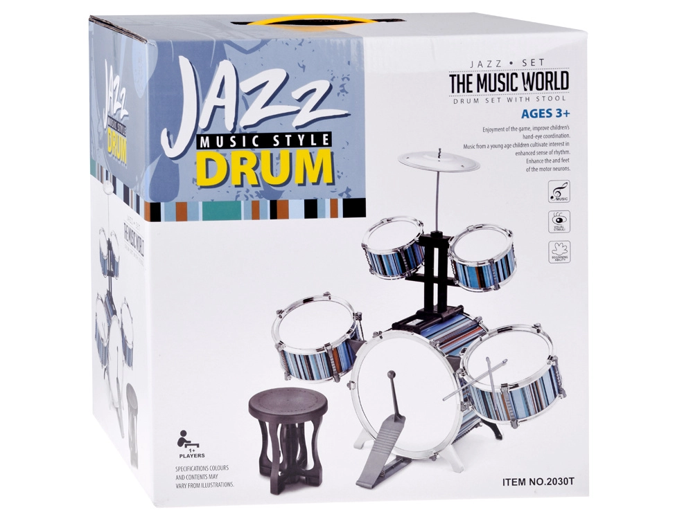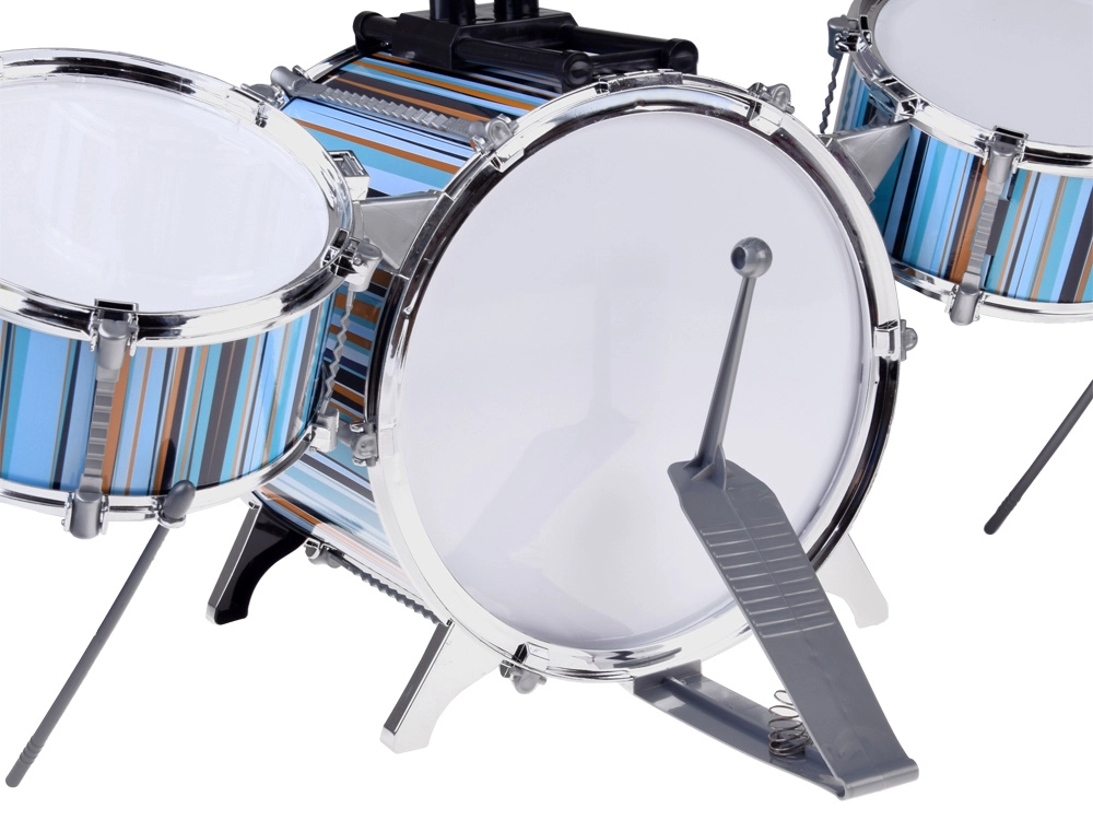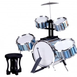 Il set comprende 5 tamburi, un piatto, 2 bacchette e uno sgabello: i bambini possono iniziare subito a suonare e imparare i ritmi di base.