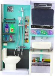 Set da bagno per bambini realistico con WC, doccia, lavandino con specchio retroilluminato e ricchi accessori igienici. Gli effetti luminosi e sonori interattivi favoriscono il gioco di ruolo creativo, insegnano le abitudini igieniche e sviluppano l’immaginazione.