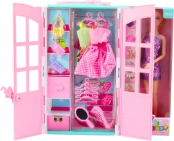Questo set riccamente accessoriato farà felice ogni bambino che ama la moda e lo stile. L’armadio apribile con ripiani nasconde variopinti vestitini, pratici appendini, scarpe e borse coordinate. Grazie allo specchietto e al pettine, la bambola è pronta per ogni occasione. Il gioco sviluppa fantasia, motricità fine e senso per il coordinamento di colori e stili.