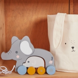 Questo elegante giocattolo da traino del marchio Bieco porta ai bambini la gioia del movimento e della scoperta. Elefante grande e piccolo su ruote stabili scorrono facilmente e, grazie al cordino in cotone, i bambini possono portarli comodamente ovunque. Il piccolo elefantino nascosto può essere estratto con semplicità e usato separatamente.