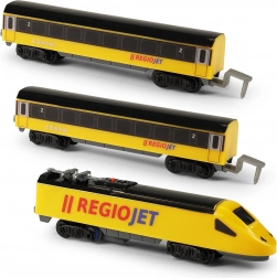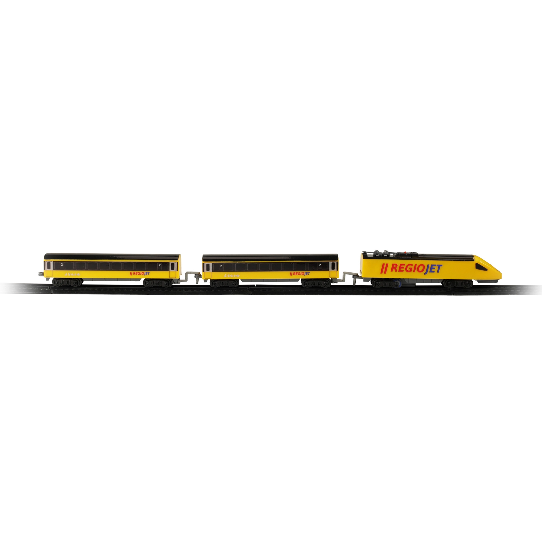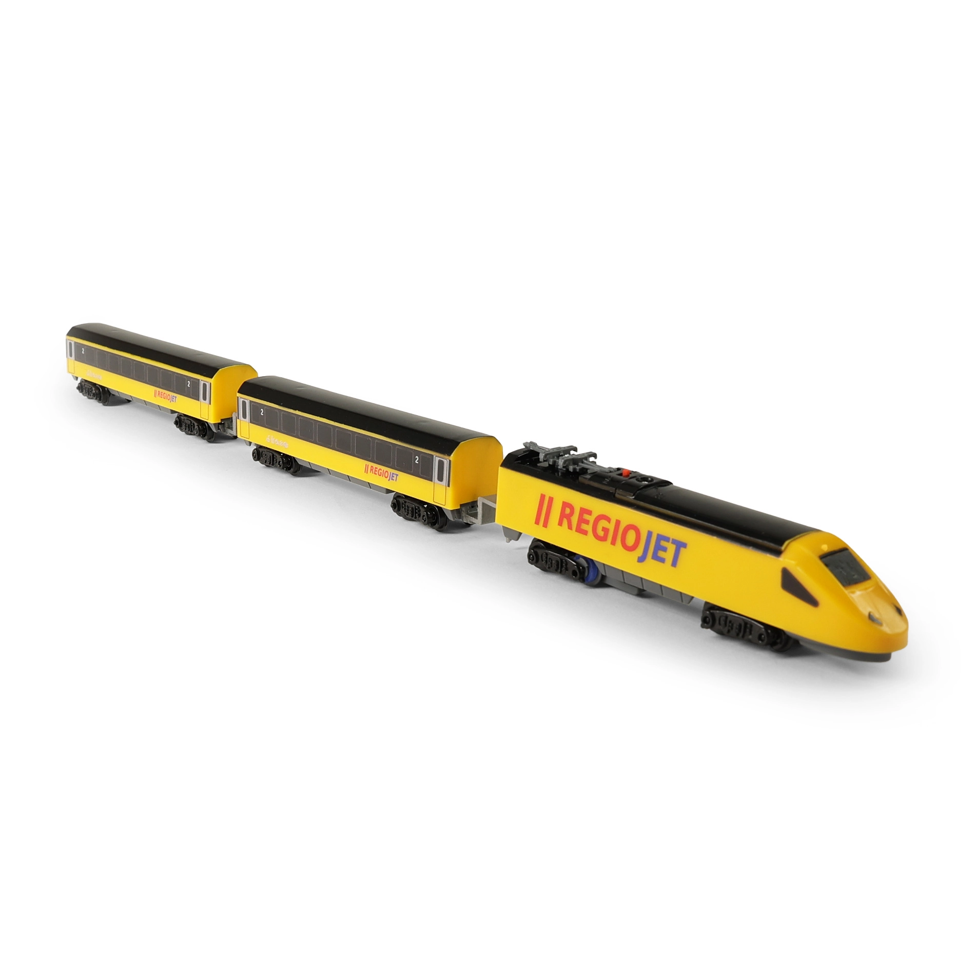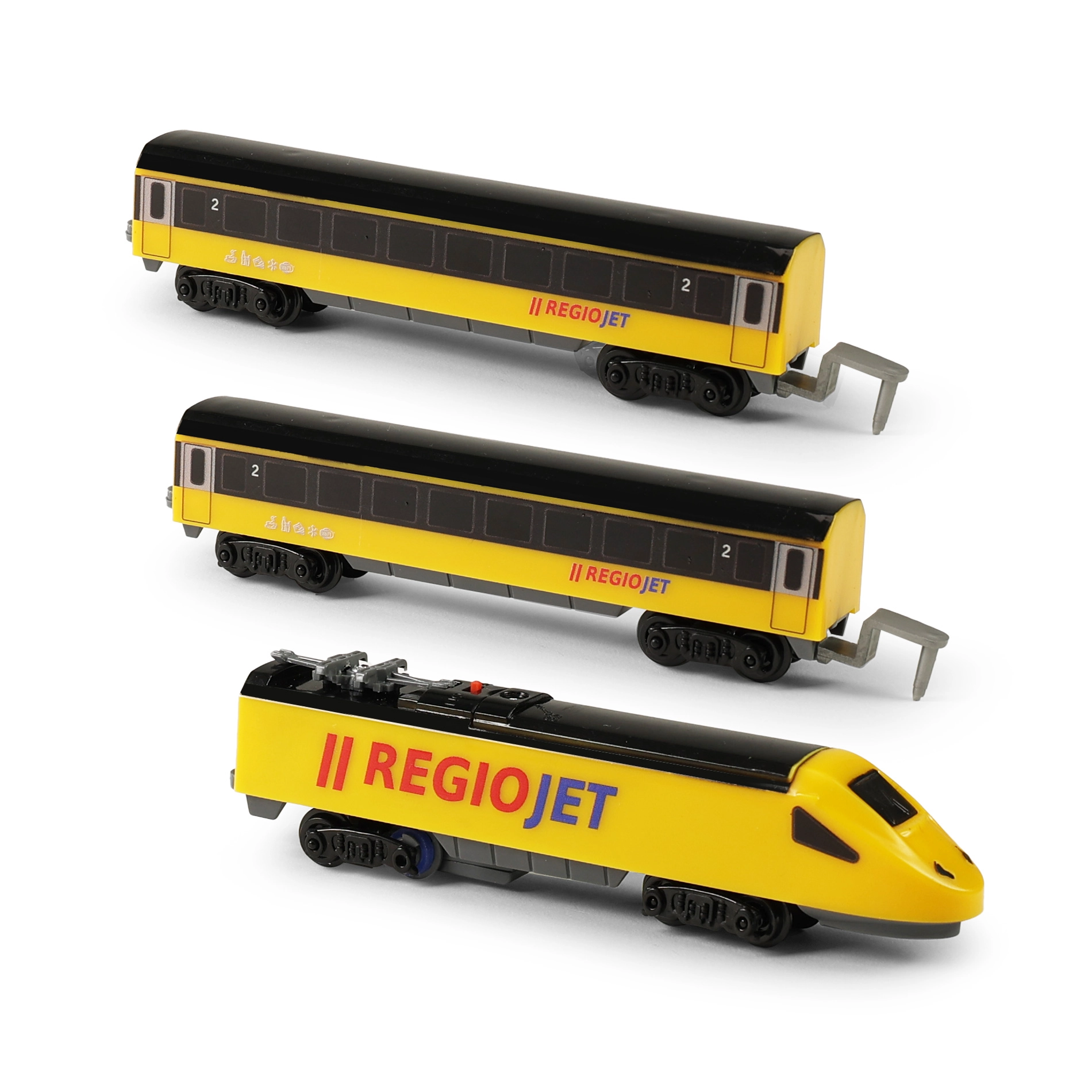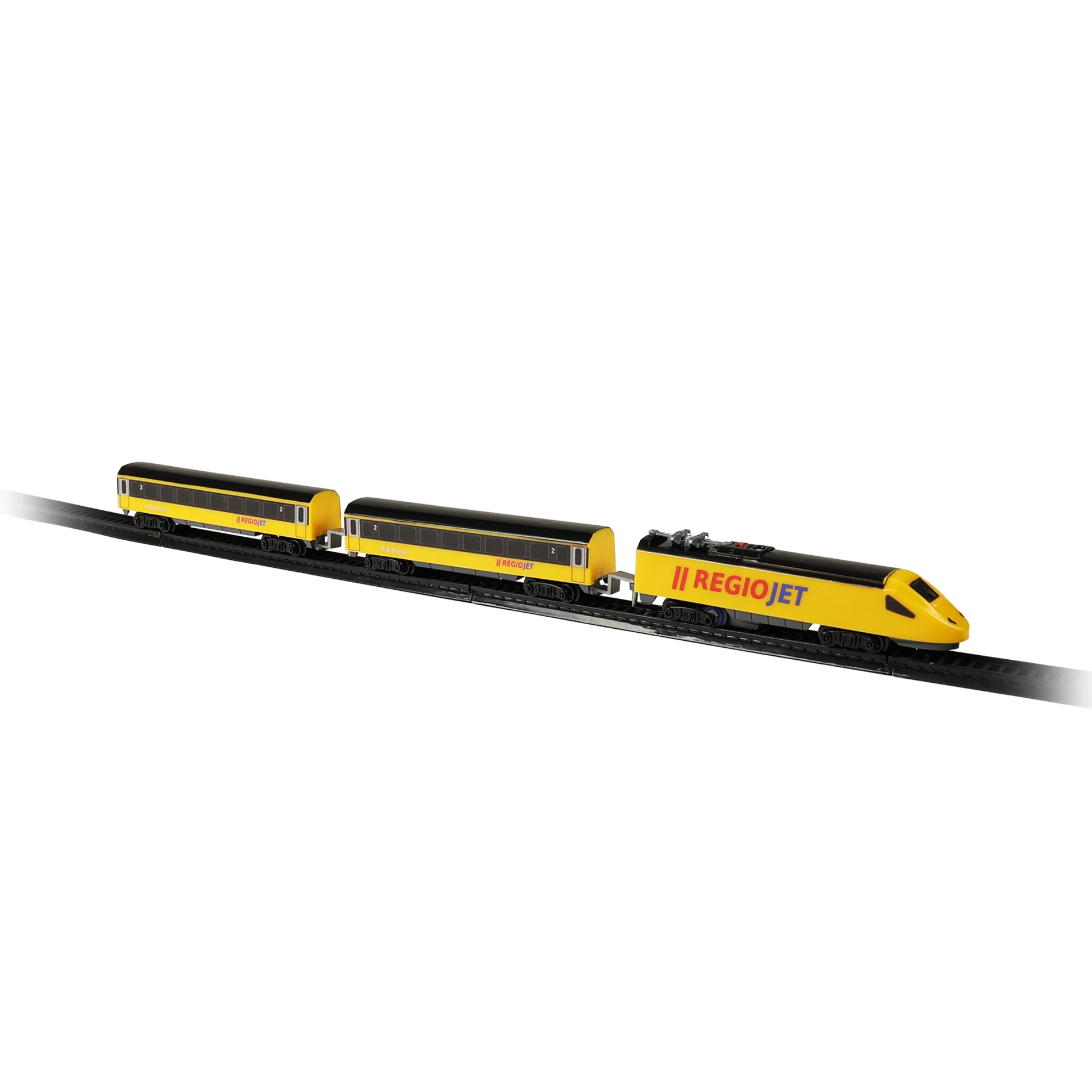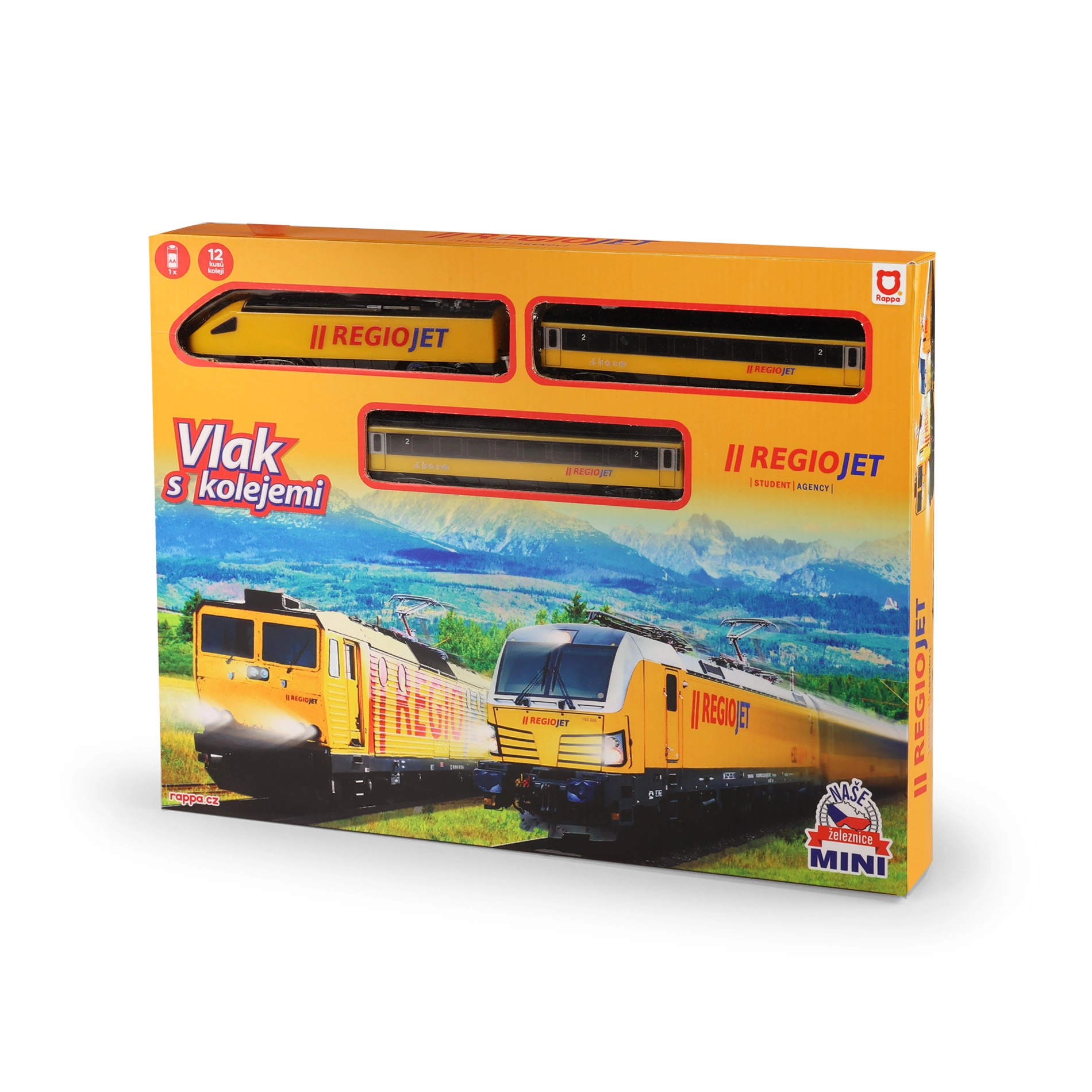 Scopri il divertimento dei trenini con il set compatto RegioJet MINI. La locomotiva gialla con due vagoni corre su binari modulari che si assemblano facilmente con 8 pezzi curvi e 4 diritti. Grazie al pratico interruttore sul tetto della locomotiva, il controllo è semplicissimo, così i bambini possono iniziare a giocare subito.