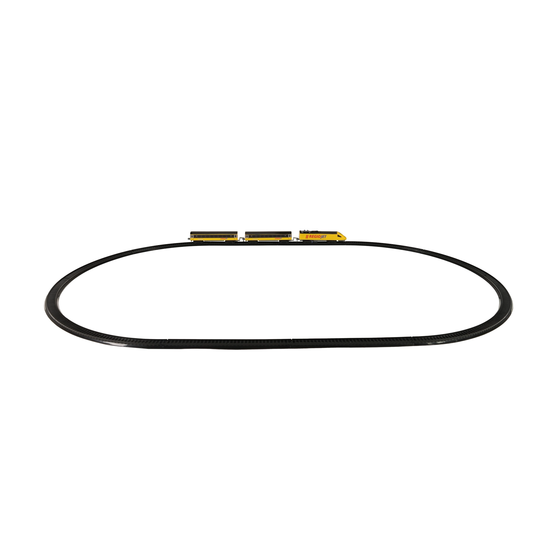 Il set contiene binari curvi e diritti con cui assemblare un circuito chiuso per un funzionamento continuo del treno.