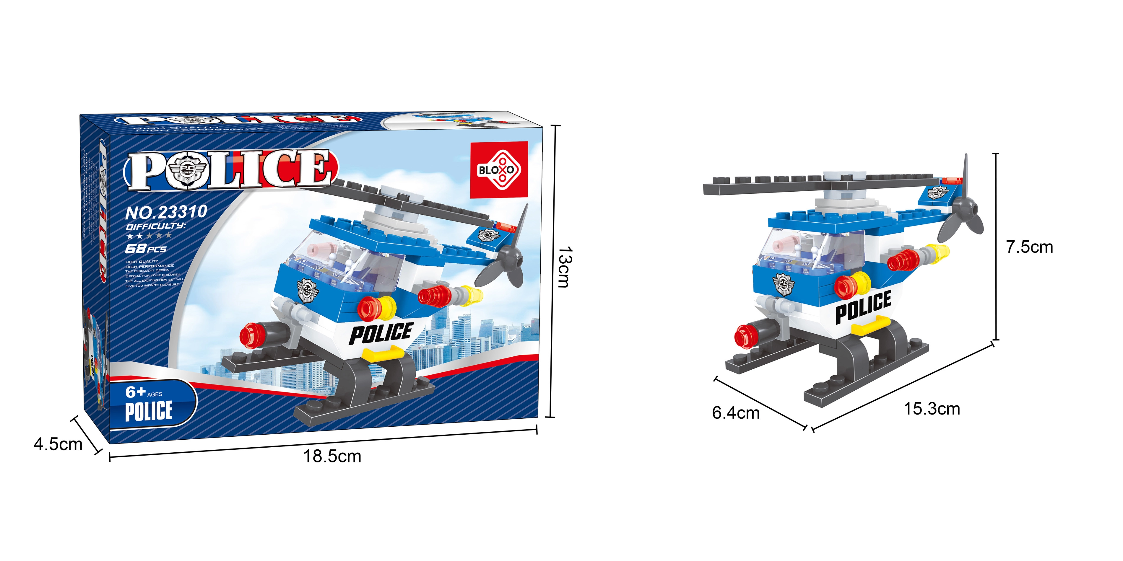 Il set di costruzioni BLOXO Polizia Elicottero unisce divertimento e apprendimento. Con 68 pezzi progettati con cura, i bambini costruiranno un elegante elicottero della polizia e potranno partire per emozionanti interventi aerei, ricerche e inseguimenti.