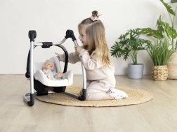 I genitori apprezzeranno il passaggio semplice e rapido tra le modalità, la lavorazione sicura e stabile e l’aspetto piacevole e universale nel colore beige. Il set è pensato per bambole fino a 42 cm e completa alla perfezione la cameretta dei bambini.