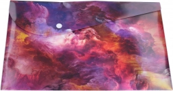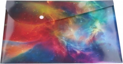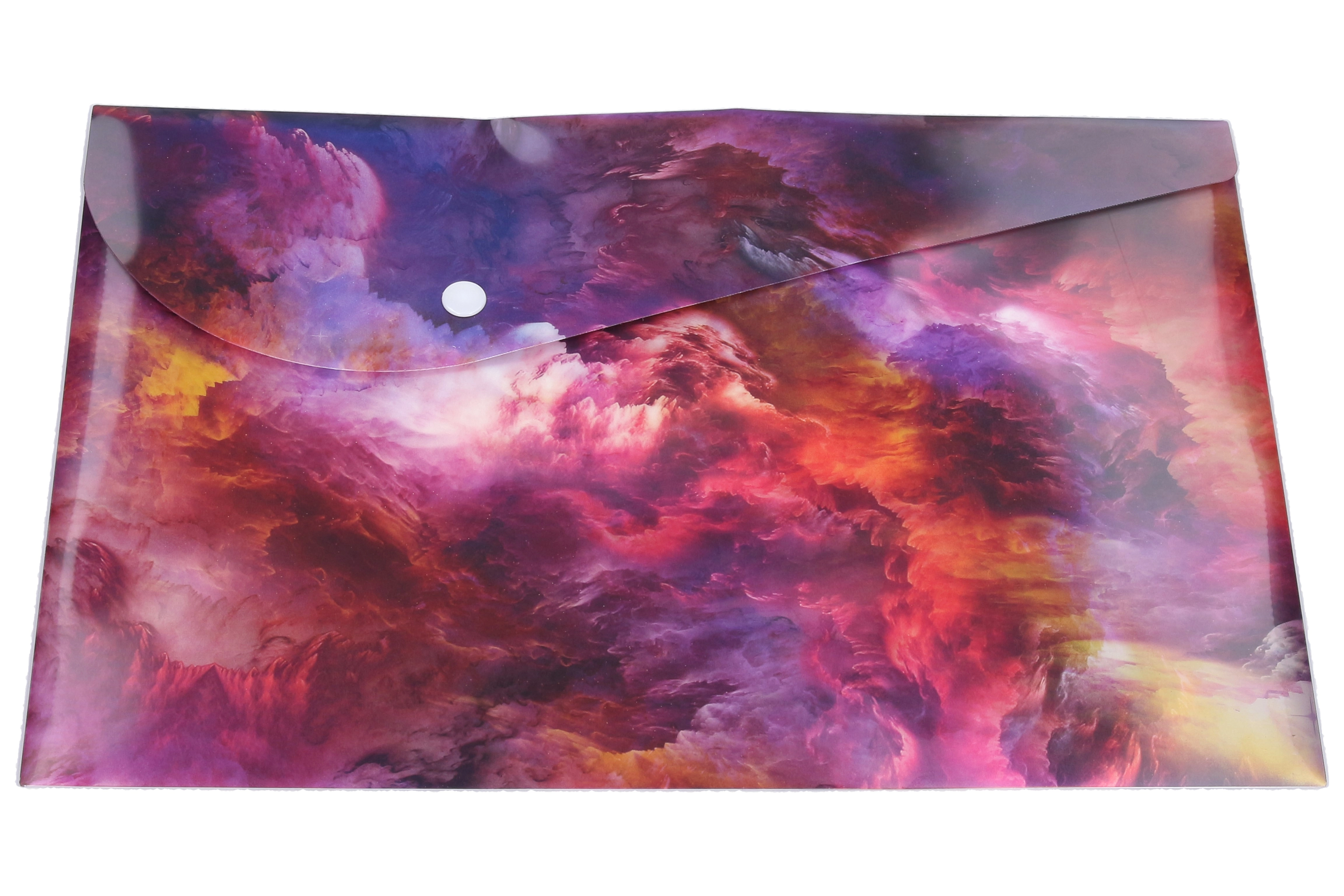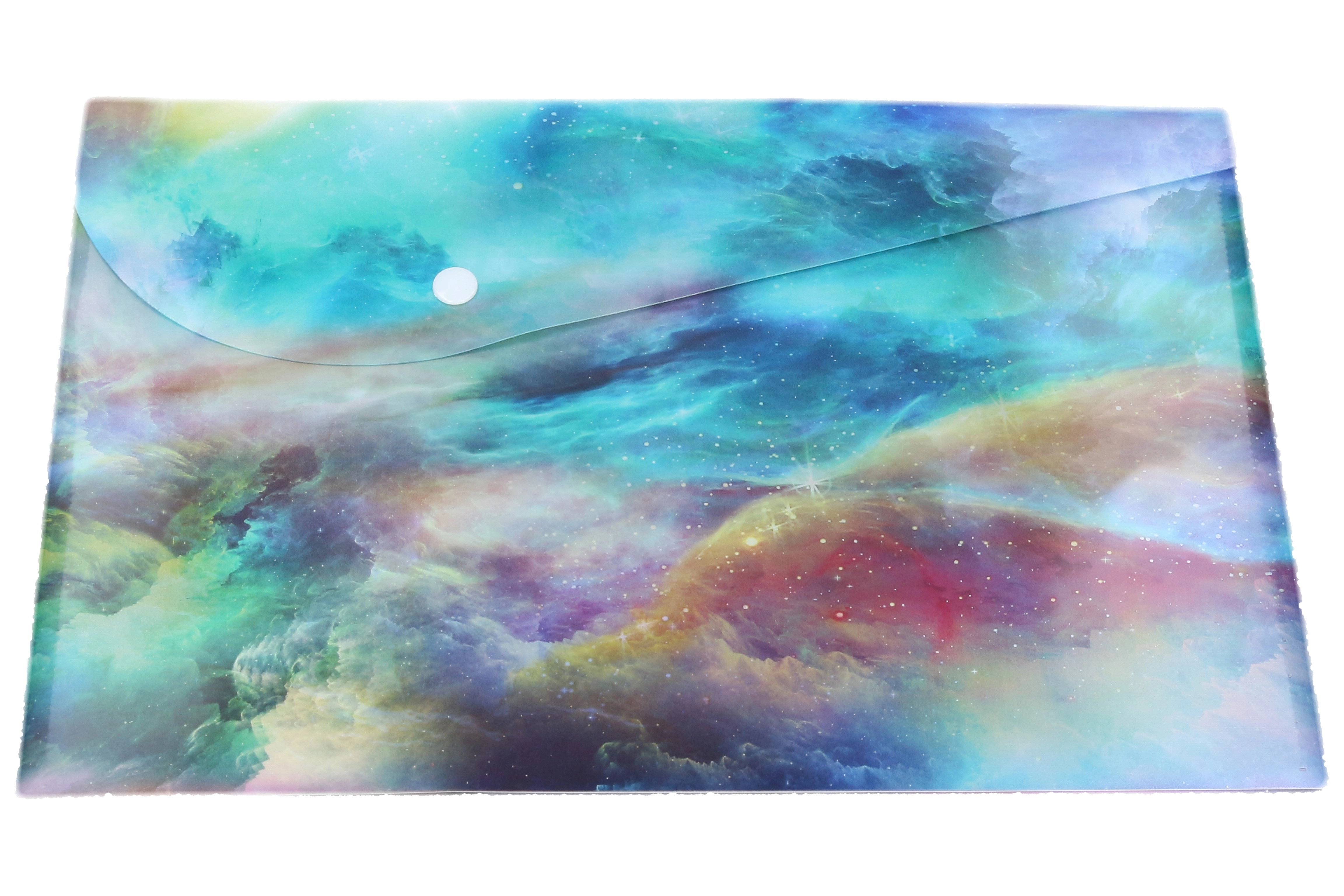 Elegante cartellina portadocumenti con bottone a pressione dal design spaziale che protegge i tuoi fogli da polvere e umidità. Ideale per formato A4 e per scuola, ufficio e casa. Offre chiusura sicura a pressione, plastica resistente e quattro attraenti varianti di stampa galaxy.
