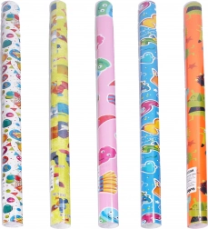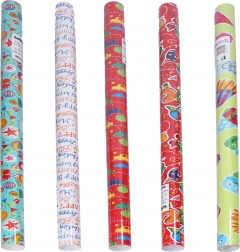 Allegra carta da regalo con motivi per bambini nel formato 0,7 × 2 m, ideale per confezionare regali di compleanno e piccole sorprese. Offre un mix colorato di fantasie, si taglia facilmente e mantiene bene la forma durante il confezionamento.
