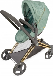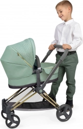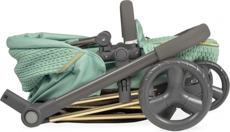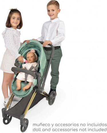 Questo passeggino per bambole dal design raffinato si distingue per il tessuto verde menta moderno e i dettagli decorativi, inclusi elementi dorati. Grazie alla struttura studiata, si trasforma facilmente da navicella profonda a versione sportiva e viceversa. Il maniglione alto (73 cm) assicura un controllo comodo anche ai bambini in età prescolare.