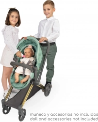 La soluzione pratica è completata dalla capottina regolabile, dalla cintura a tre punti per un alloggiamento sicuro della bambola e dal capiente cestello inferiore. Il passeggino si piega rapidamente per lo stoccaggio e il trasporto in auto. Inclusa un’elegante borsa rimovibile in tinta con la collezione.