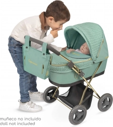 Il passeggino è perfettamente equipaggiato per il gioco quotidiano – dal parasole pieghevole alla borsa rimovibile con zip dorate, fino al morbido materassino e al capiente cestino per piccoli oggetti. La lavorazione accurata e il design spagnolo ne sottolineano la qualità e la lunga durata.