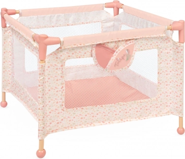 Il set include un box da gioco robusto con lati in rete e una tasca pratica per piccoli oggetti, oltre a un seggiolone con vassoio removibile e cintura a tre punti per un fissaggio sicuro della bambola. Entrambi i prodotti sono progettati per bambole fino a 36 cm e si distinguono per la facile maneggevolezza e manutenzione.